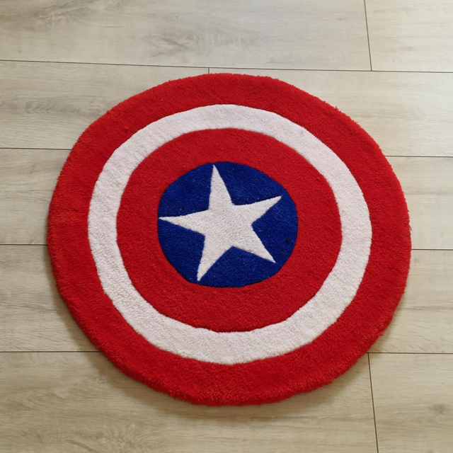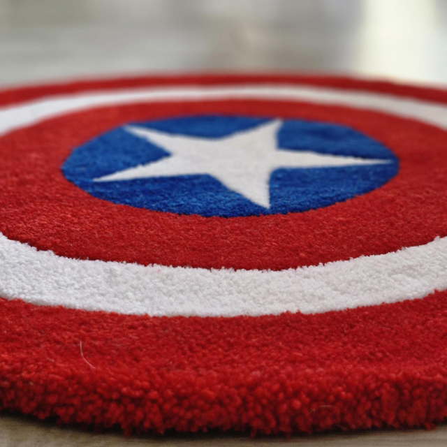 Tapis Bouclier de Captain America en laine acrylique, inspiré du symbole légendaire des Avengers.